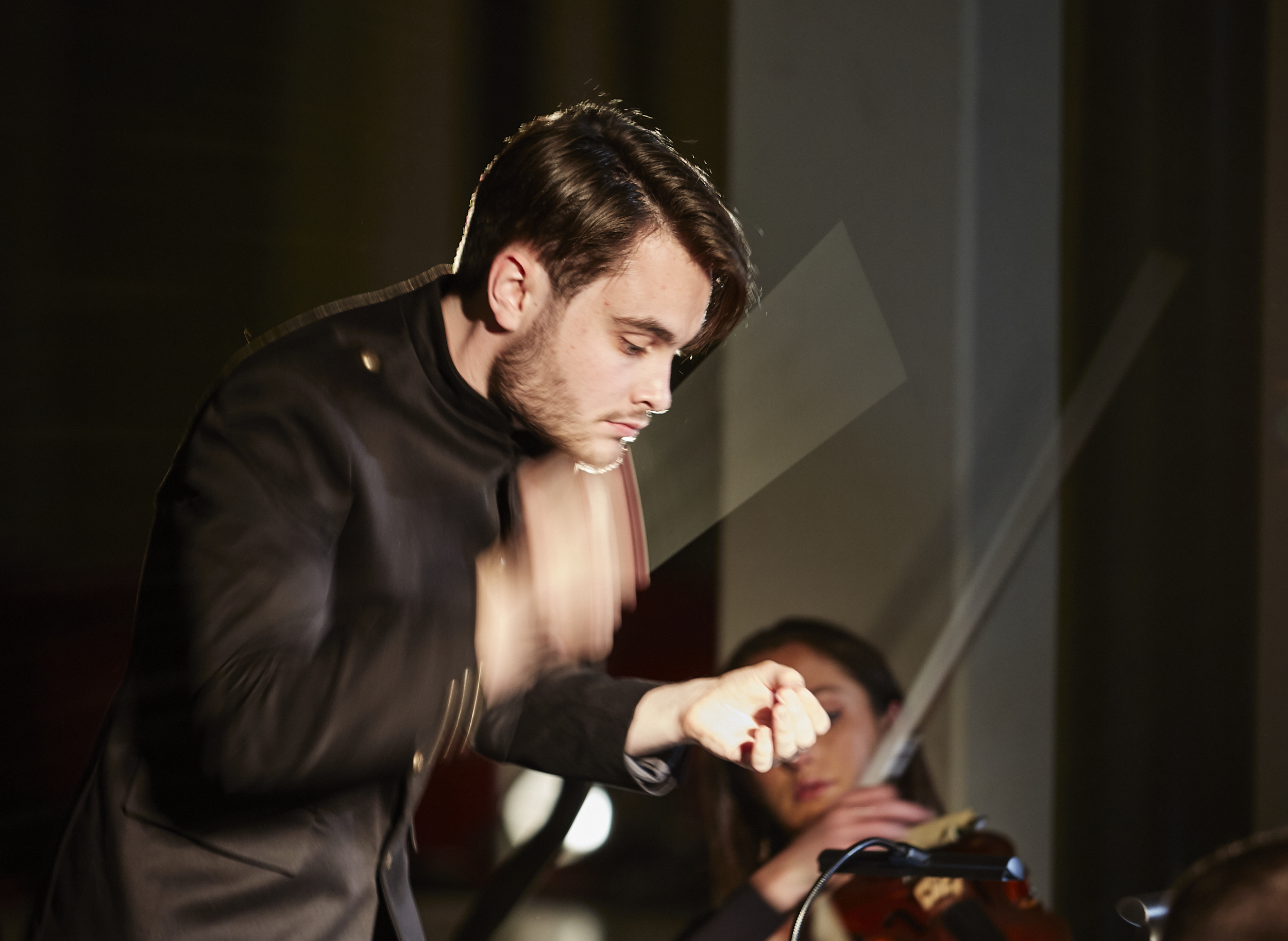 Sam conducts Ensemble Apex, captured by Keith Saunders